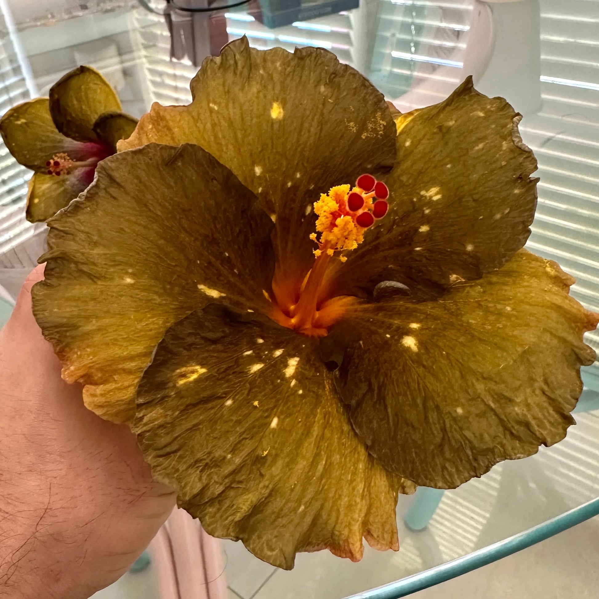 Adapting gracefully to diverse environments, Bewitched Bronze, with its bronzed elegance and sparkling spots, finds its place in gardens, containers, or as a standalone hibiscus beauty, adding a touch of mystical enchantment to any landscape.