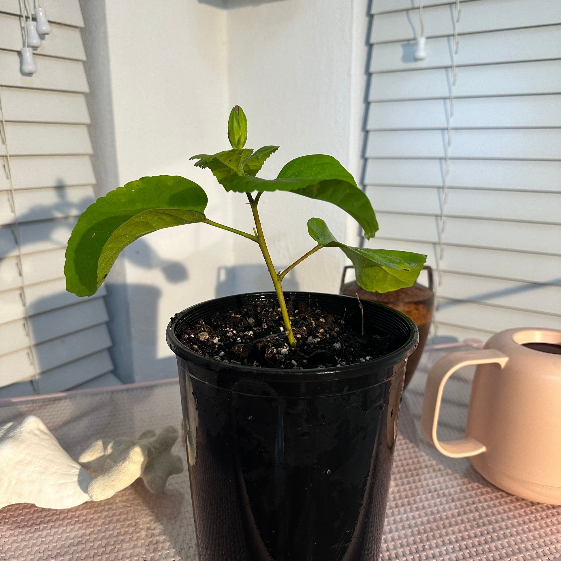 Consistent watering, proper fertilization with hibiscus fertilizer, and occasional pruning enhance its resilience, encouraging vigorous growth and the captivating blooming that defines this unique hibiscus.