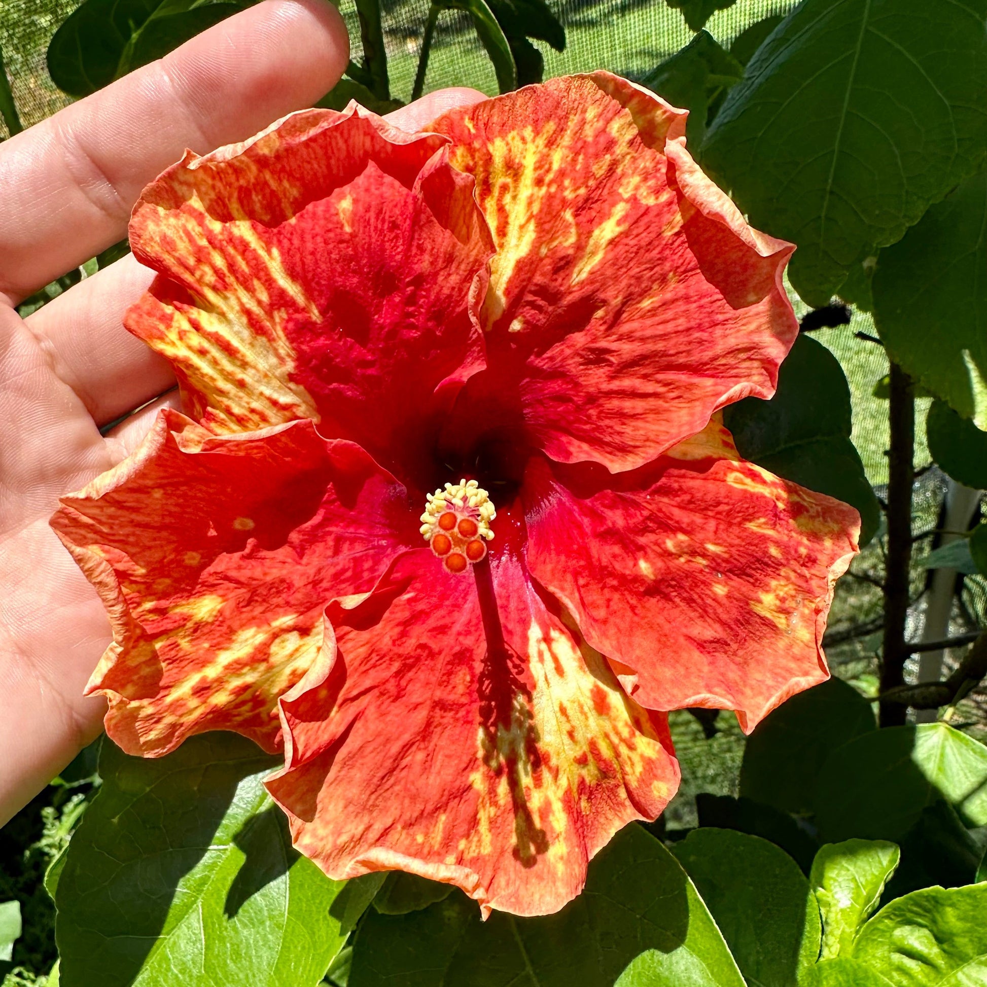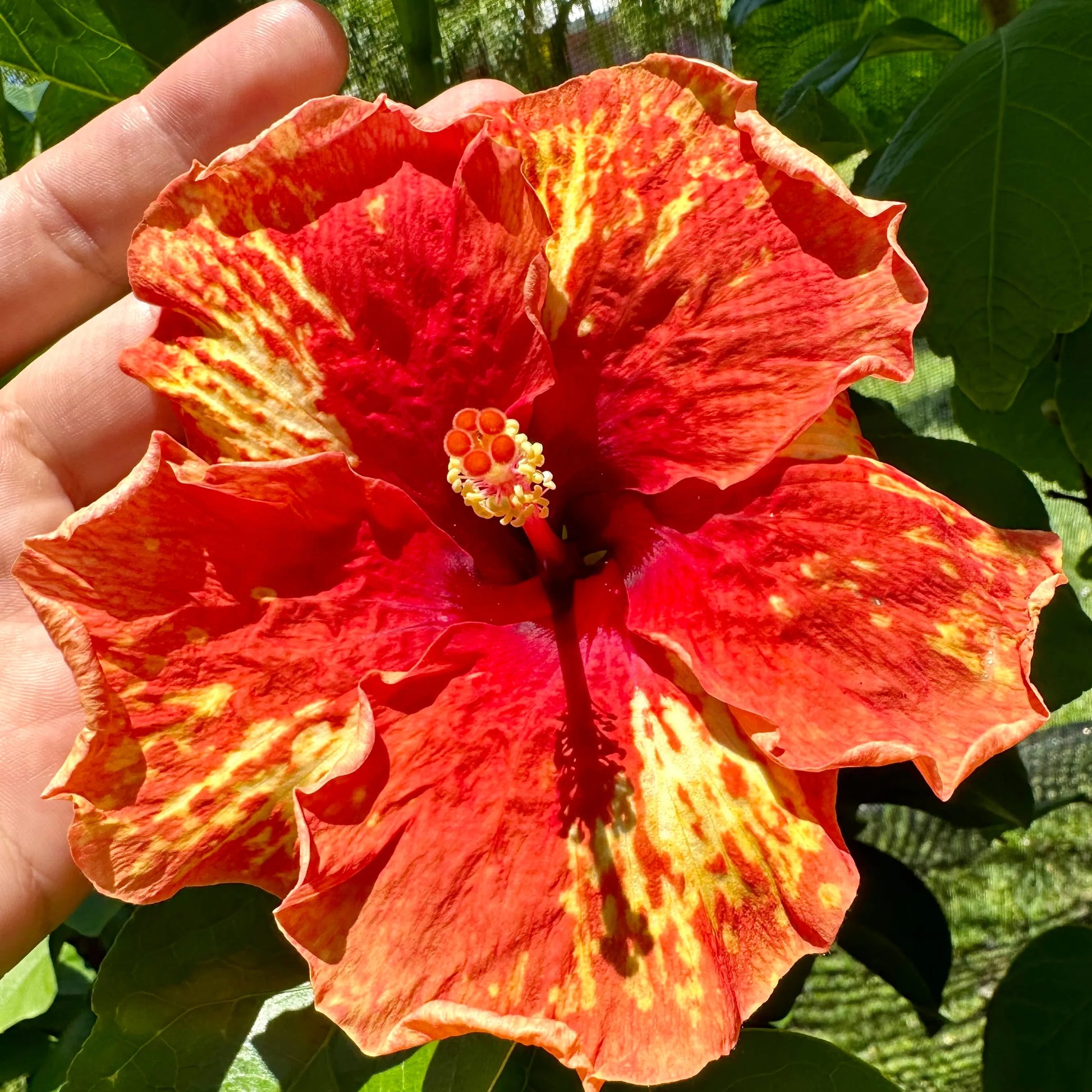 Adapting gracefully to diverse environments, Bennu's Glowing Blaze, with its radiant red allure and celestial yellow streaks, finds its place in gardens, containers, or as a standalone hibiscus beauty, adding a touch of fiery elegance to any landscape.