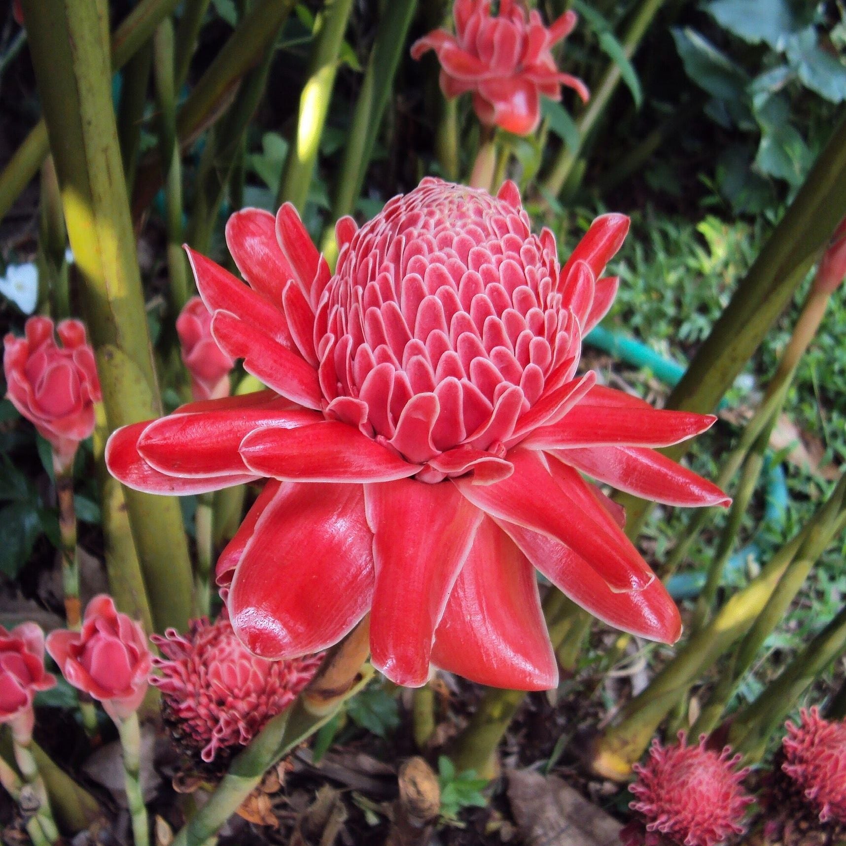 Elevate your garden with the Red Torch Ginger (Etlingera elatior), a captivating species boasting vibrant red inflorescences. The leave grow very tall for a ginger and are impressive even without the amazing flowers.
