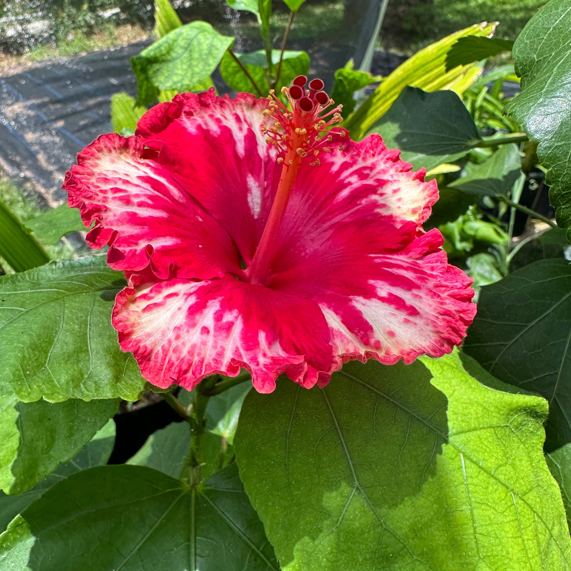 This hibiscus variety is versatile, making a statement whether planted as a hedge, a standalone feature, or in a container. It adds a rebellious touch of color and tropical flair wherever it grows.